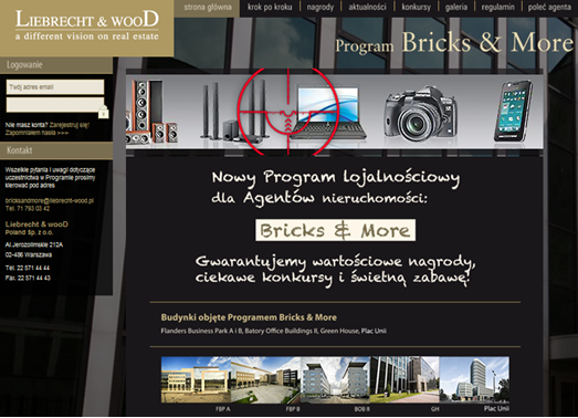 Projekt, wdrożenie i kompleksowa obsługa programu partnerskiego „Bricks and More” dla firmy Liebrecht & wooD i jej pośredników, przedstawicieli i agentów na rynku nieruchomości.