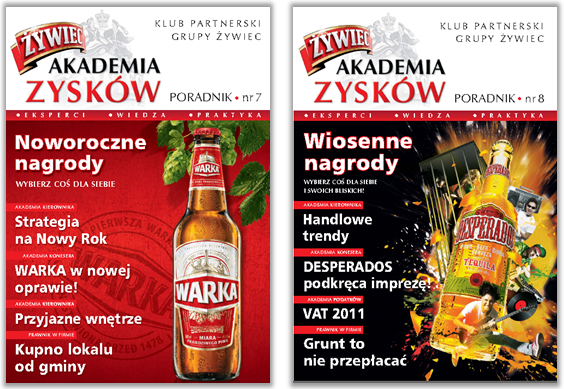 W oparciu o badania marketingowe, w tym badanie oczekiwań i satysfakcji klientów B2B, będących potencjalnymi uczestnikami największego programu lojalnościowego w branży FMCG „Akademia Zysków” Grupy Żywiec opracowaliśmy koncepcję, strategię merytoryczną, key-visual i całościowy layout cyklicznych Poradników Klubu Partnerskiego. Grupa VSC zbudowała także zespół redakcyjny, do którego zaprosiliśmy ekspertów aby podzielili się z kierownikami i personelem sklepów w kanale detalicznym fachową wiedzą, interesującymi danymi oraz cennymi inspiracjami. Dodatkowe wsparcie merytoryczne poradnika klubu partnerskiego zapewniła współpraca ze znanym portalem jakoscobslugi.pl oraz Polskim Programem Jakość Obsługi. W ten sposób personel lokalnych sklepów spożywczych zyskał dostęp do badań satysfakcji konsumentów oraz branżowych raportów jakości obsługi, zarezerwowanych do tej pory dla dużych korporacji.
